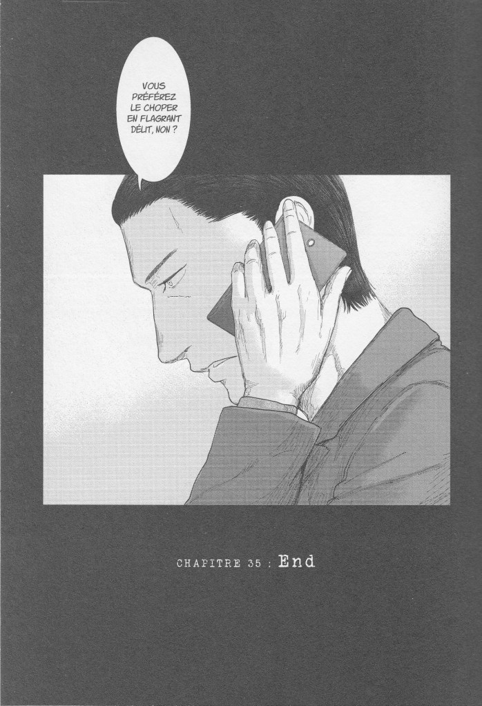 De son côté, Igarashi découvre, contre toute attente, l’identité du précédent locataire de l’appartement où a eu lieu l’un des homicides tandis que, au même moment, Kito reçoit un coup de fil de son fameux indic : End serait en train de passer à l’action ! Les deux agents se rendent alors à l’endroit indiqué sans hésiter, dans l’espoir de coincer enfin le meurtrier…
