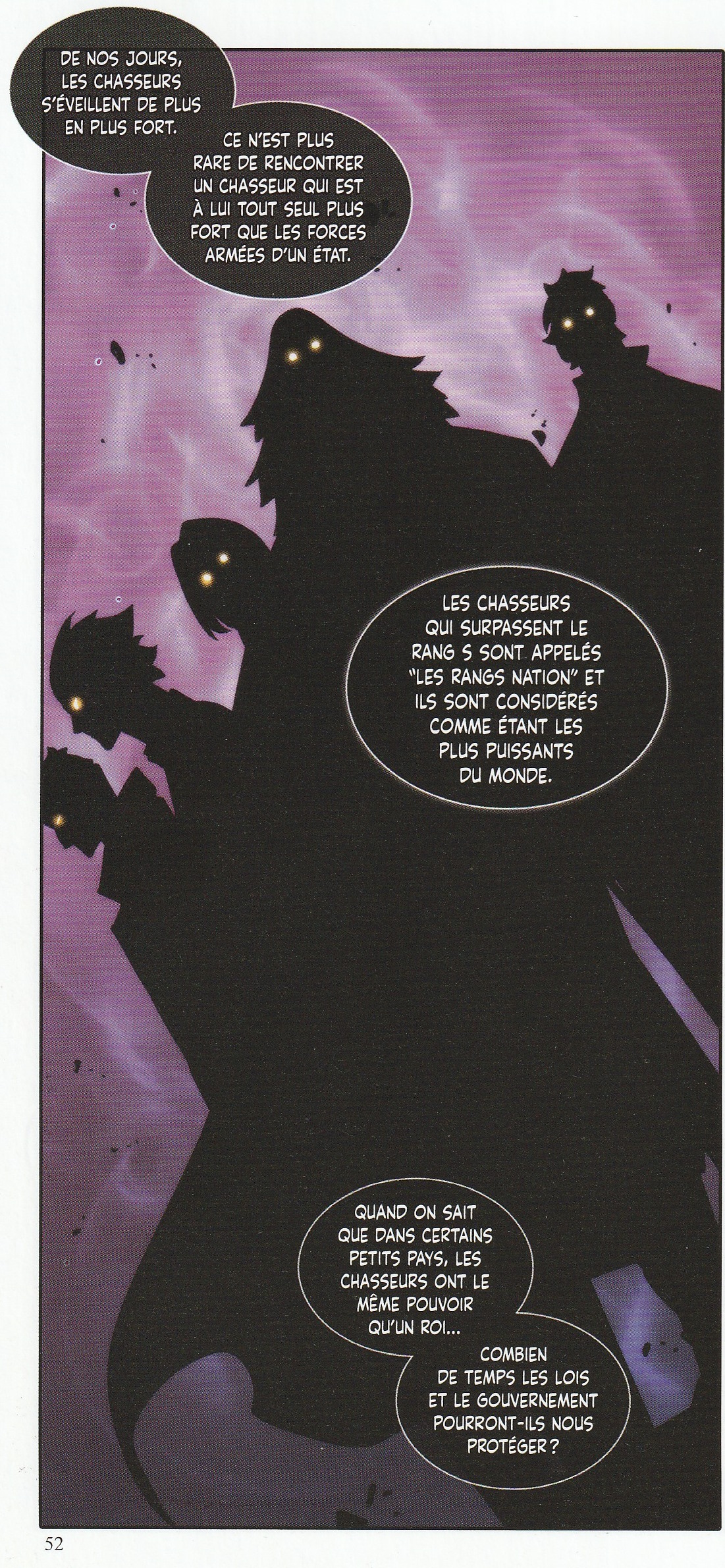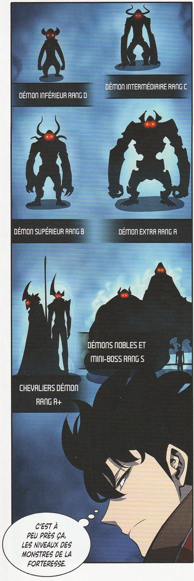 Alors que dans le tome 6, le niveau de Sung est confirmé par une voie détournée, ce tome offre la confirmation que Sung Jinwoo est passé du rang le plus faible, E, au rang S dont on ne peut mesurer la puissance. Par ailleurs, ce tome apporte une information inédite. Au-delà du rang S se trouve un autre rang, le rang Nation.