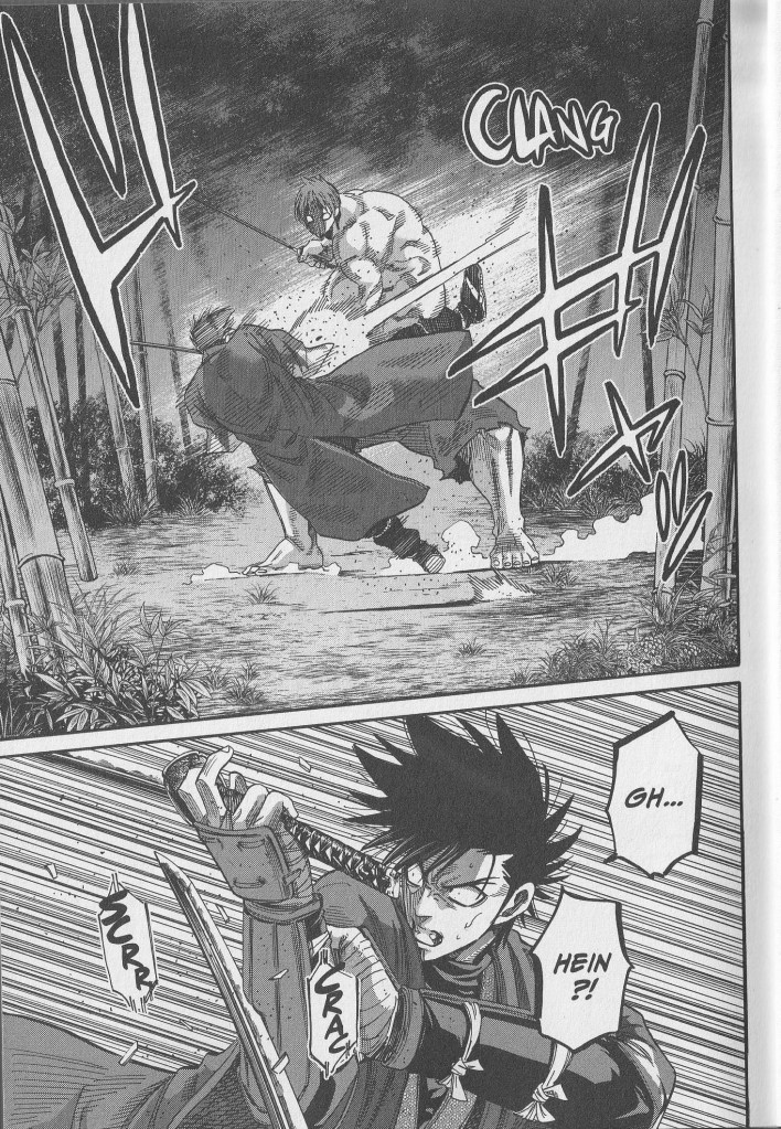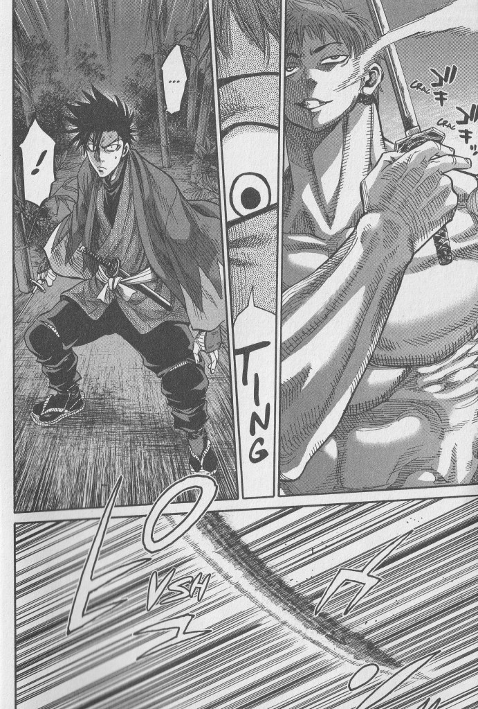 « Une guerre totale opposant les guerriers du Shinsen Gumi aux sept démons du Mito Tengu-to se déroule dans les rues de Kyoto. Alors que les combattants tombent les uns après les autres, l’un des démons perd pied avant de perter le coup final. Au même moment, Hanjirô Nakamura, dit Hanjirô l’assassin, un guerrier ô combien effrayant, refait surface… »