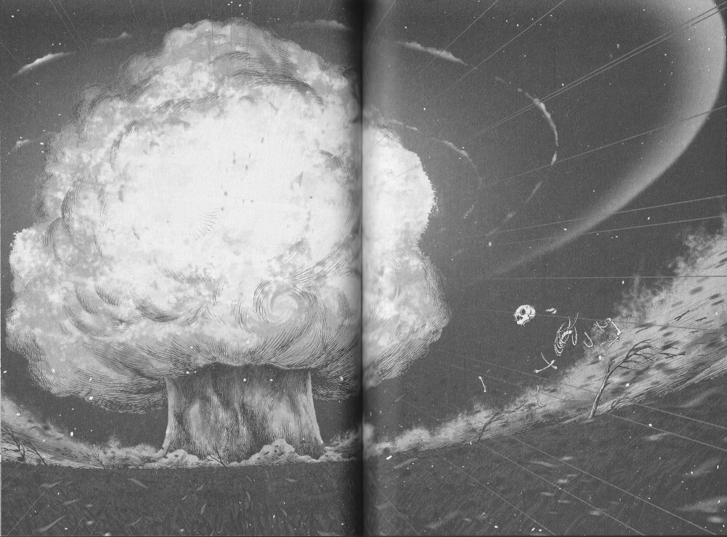 En plus de ces événements, il verra une bombe atomique… Avec la bombe atomique, je vois un parallèle entre la peur des Japonais vis-à-vis de la disparition ou de l’intégration du Japon et les campagnes d’assimilation subie par les Premières nations de l’Amérique du Nord. Toutes deux visent la disparition ou l’intégration d’une culture.