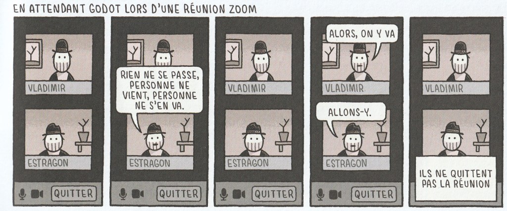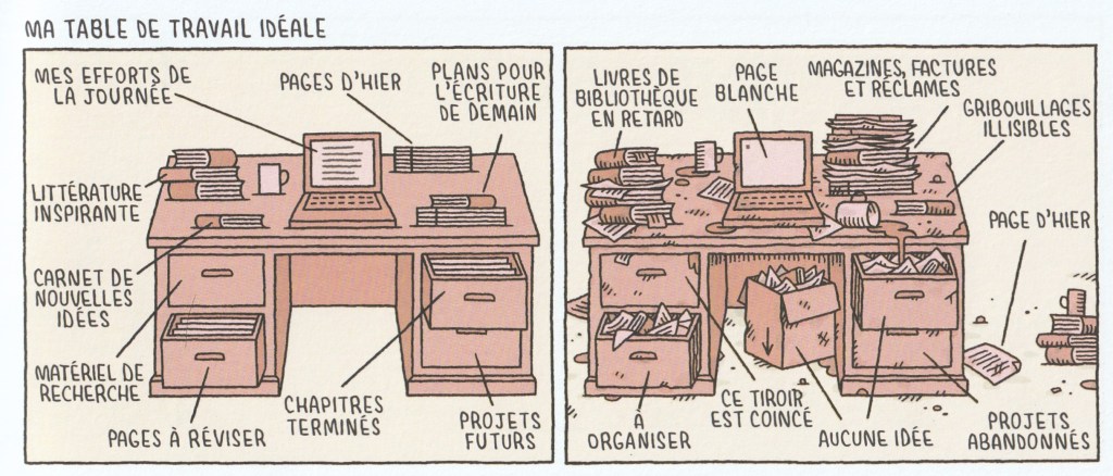Les histoires sont présentées sous forme d’illustration (1 image = 1 histoire) ou sous forme de bandes (strip) tenant sur une seule page. D’une page à l’autre, le sujet change. Tantôt sur les auteurs, tantôt sur les éditeurs, parfois sur la lecture et j’en passe. Ce livre fait rire ou minimalement sourire la personne qui est adepte de lectures. Du bon temps en perspective.