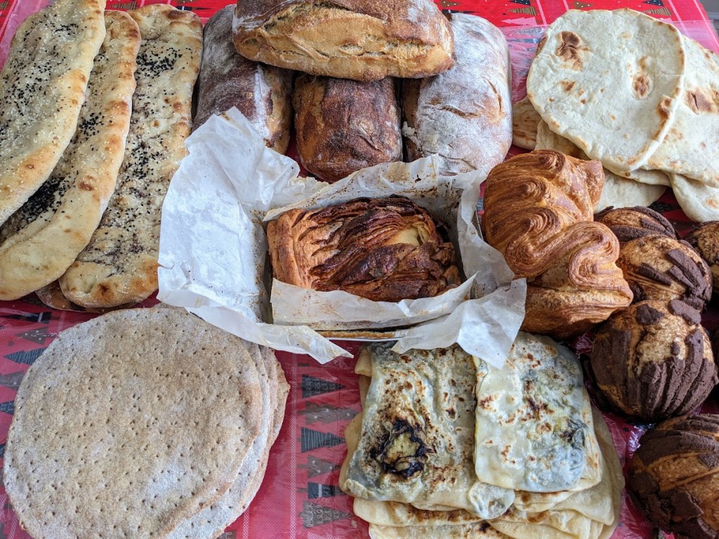 La semaine dernière, ce fut une semaine consacrée aux pains du monde. J’ai été occupé par deux soirs de formation. Au cours de ces 8 heures de cours, j’ai poursuivi mon apprentissage de la fabrication de pain. Au terme du cours, nous repartions avec notre production : des Msemen marocain (une sorte de pain plat), des Concha d’Amérique du Sud (brioches avec un croustillant au cacao), des pains du Languedoc au levain, des Knackebrod suédois (pain plat rond sec au seigle), des Kouign-Amann de Bretagne (dessert feuilleté caramélisé), des Barbari de Perse (pain plat long), des Naan au levain d’Inde (pain plat), des Babka à différentes saveurs (pâte à brioche garnie) et des brioches feuilletées . Miam!