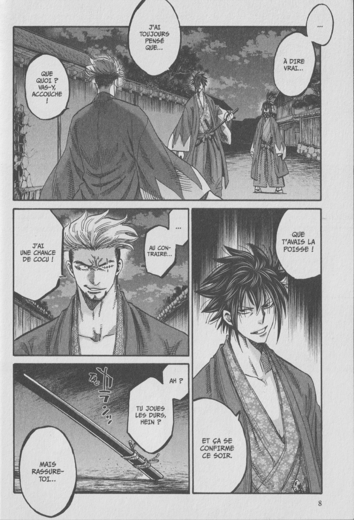 « La bataille opposant les sept démons du Mito Tengu-to et les hommes de Kondô touche bientôt à sa fin! Abandonné par Okita en route pour retrouver Serizawa, Toshizo Hijikata affronte seul Gorô Hirayama, le bretteur borgne. Tout amène à la collision de leurs deux tempéraments destructeurs. Au cours de cette nuit, certains samouraïs pourraient bien y perdre la vie… »