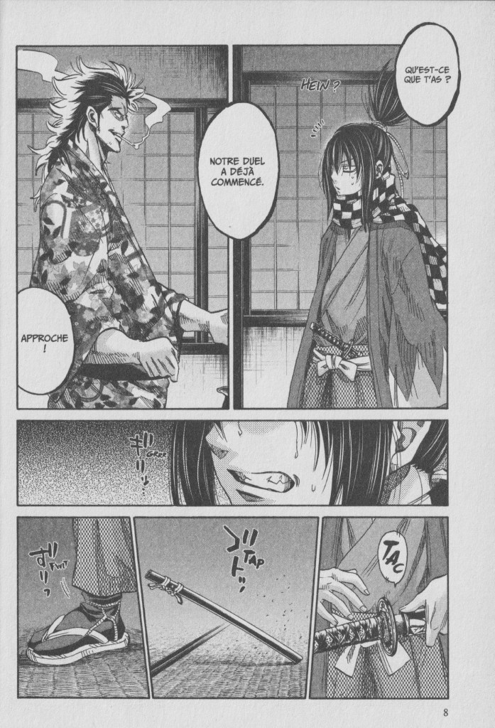 Face au démon Kamo Serizawa se dresse un autre monstre, qui vit caché tout au fond de Sôji Okita. Chacun persuadé d’être le plus fort, ils croisent le fer lors d’un duel dans lequel ils mettent en jeu leurs convictions, et surtout leur vie… »