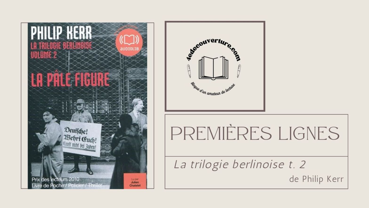 Chères lecteurs et lectrices aimant la lecture, La semaine dernière, j’ai commencé le livre audio La trilogie berlinoise t. 2 de Philip Kerr publié par Le livre de poche. Le rendez-vous hebdomadaire Premières lignes a été créé par Ma lecturothèque et il vise à faire découvrir un livre au travers de ses premières lignes. Je vise àLire la suite « Premières lignes : La trilogie berlinoise t.2 »